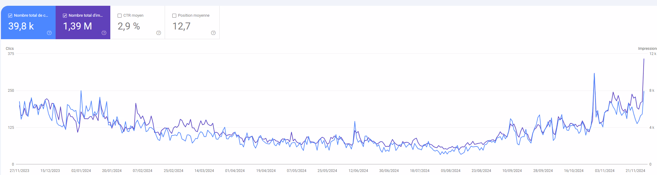 Date de fin de prise en compte du CA : 30 novembre 2024