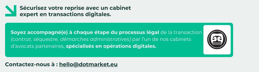 Le prix de vente final est également fixé et validé en amont par DotMarket. Nous nous réservons le droit de refuser les sites proposés à des prix non justifiés selon notre expertise et la demande actuelle du marché.