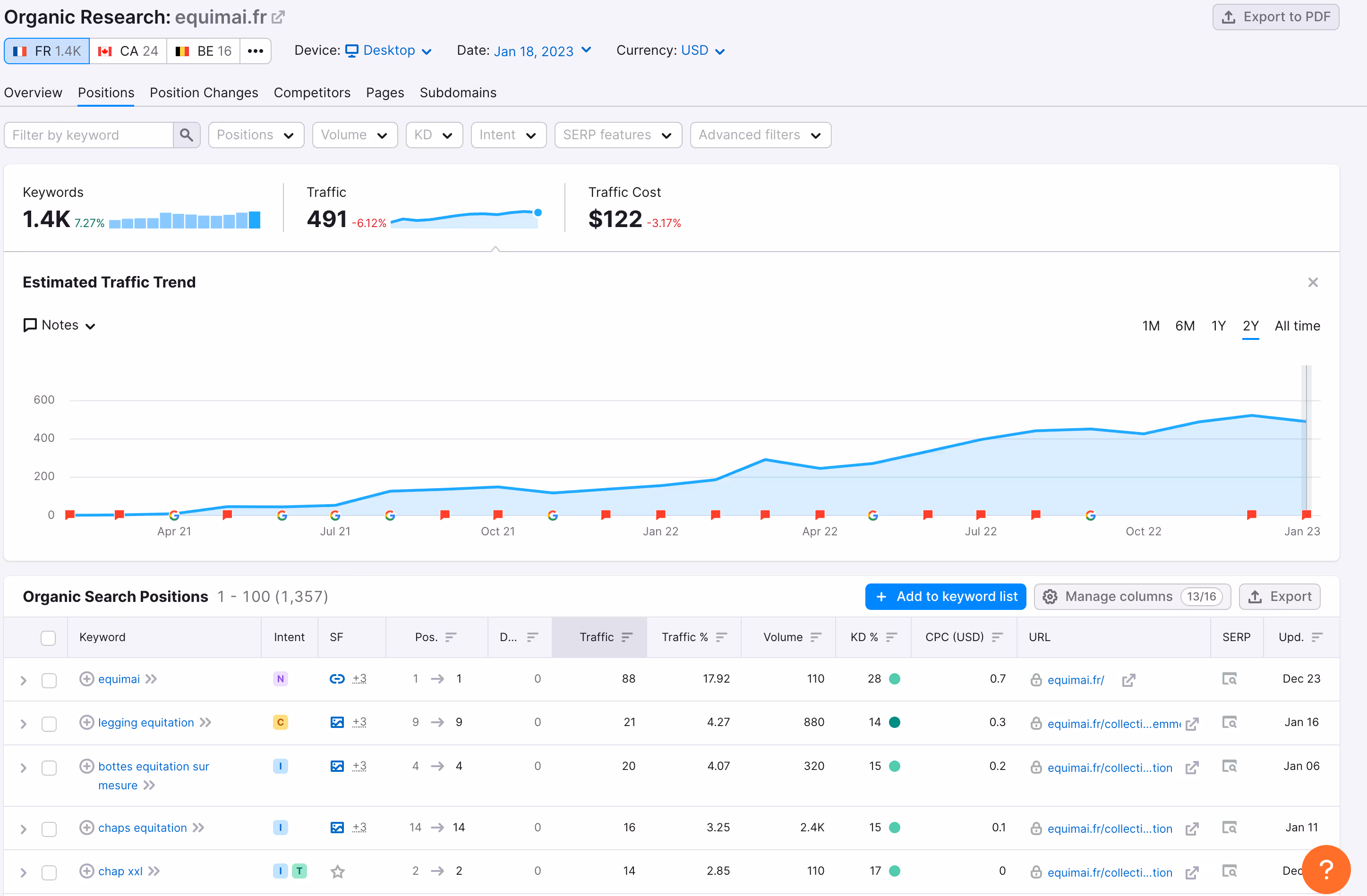 La boutique se rapproche de la page 1 de Google sur des requêtes commerciales à fort trafic.