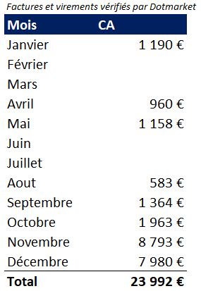 Chaque justificatif mis à disposition a été vérifié par l'équipe DotMarket lors de la phase d'analyse.