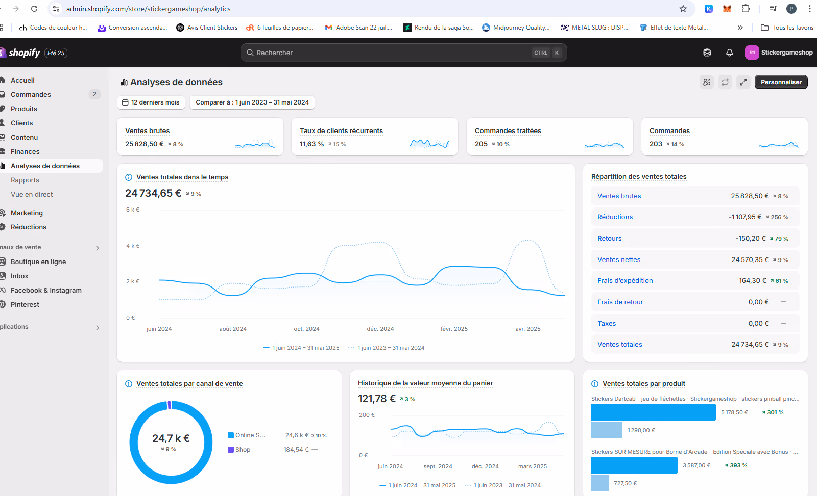 L'activité utilise déjà plusieurs canaux de vente (Ebay, SEA, SEO, réseaux sociaux), mais reste sous-exploité en matière de marketing (pas d'emailing, réseaux sociaux non actifs, budget sea à optimiser).