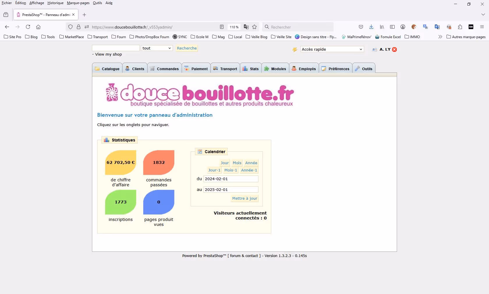 ✱ La version de Prestashop est assez ancienne 1.3 (les deux dernières versions sont la 1.7 et la 8). Nous ne conseillons pas de migration sur une nouvelle version, car cela peut engendrer un risque de perte de ventes.