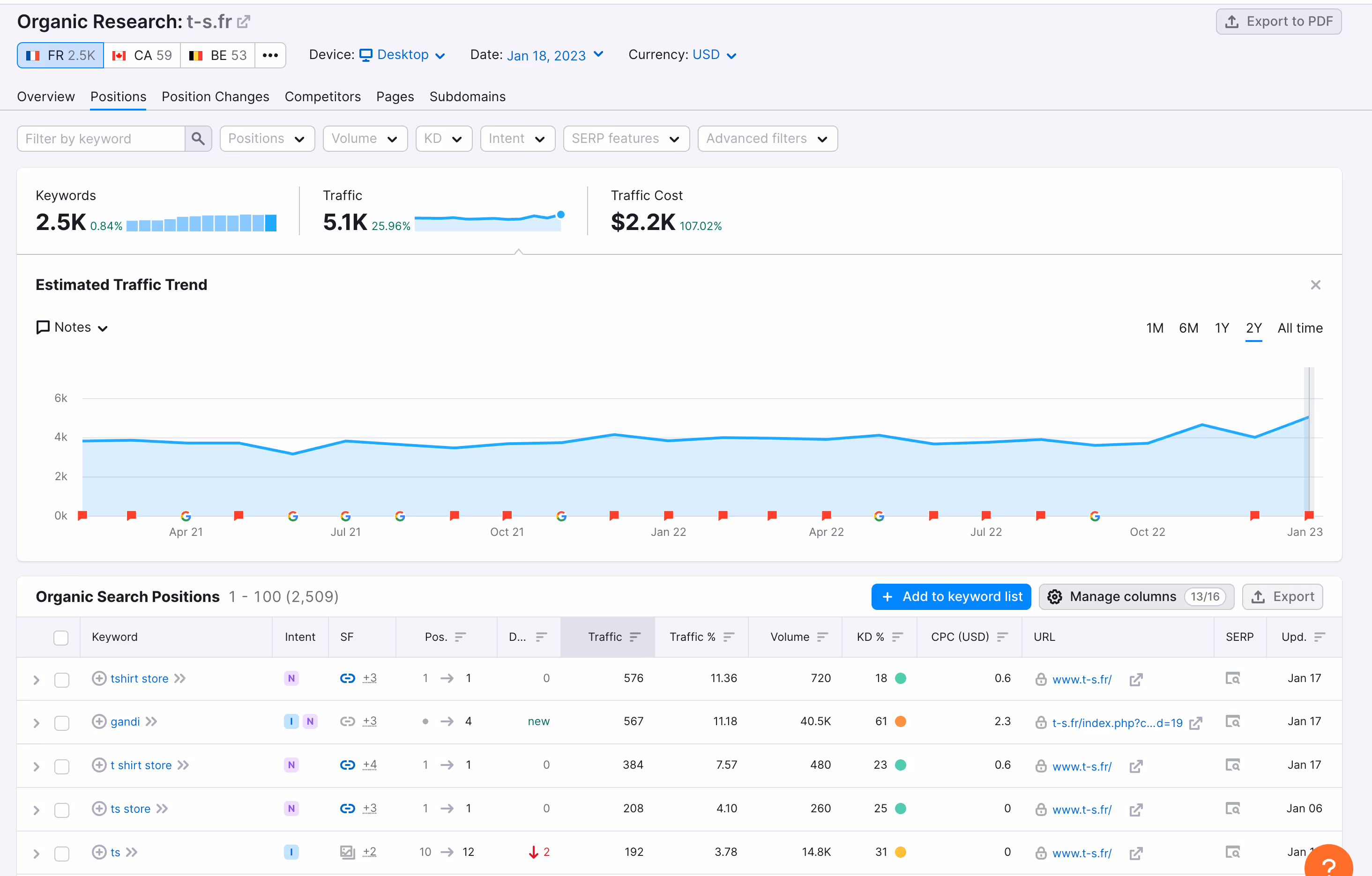 Cette boutique crée en 2000 a généré plus de 200k € de CA en 2022 malgré le fait que le site n'a aucune des optimisations des sites ecommerce modernes. Ce chiffre d'affaires a été généré grâce aux clients fidèles (54k emails actifs) et aux publicités Facebook à l'esprit décalé.