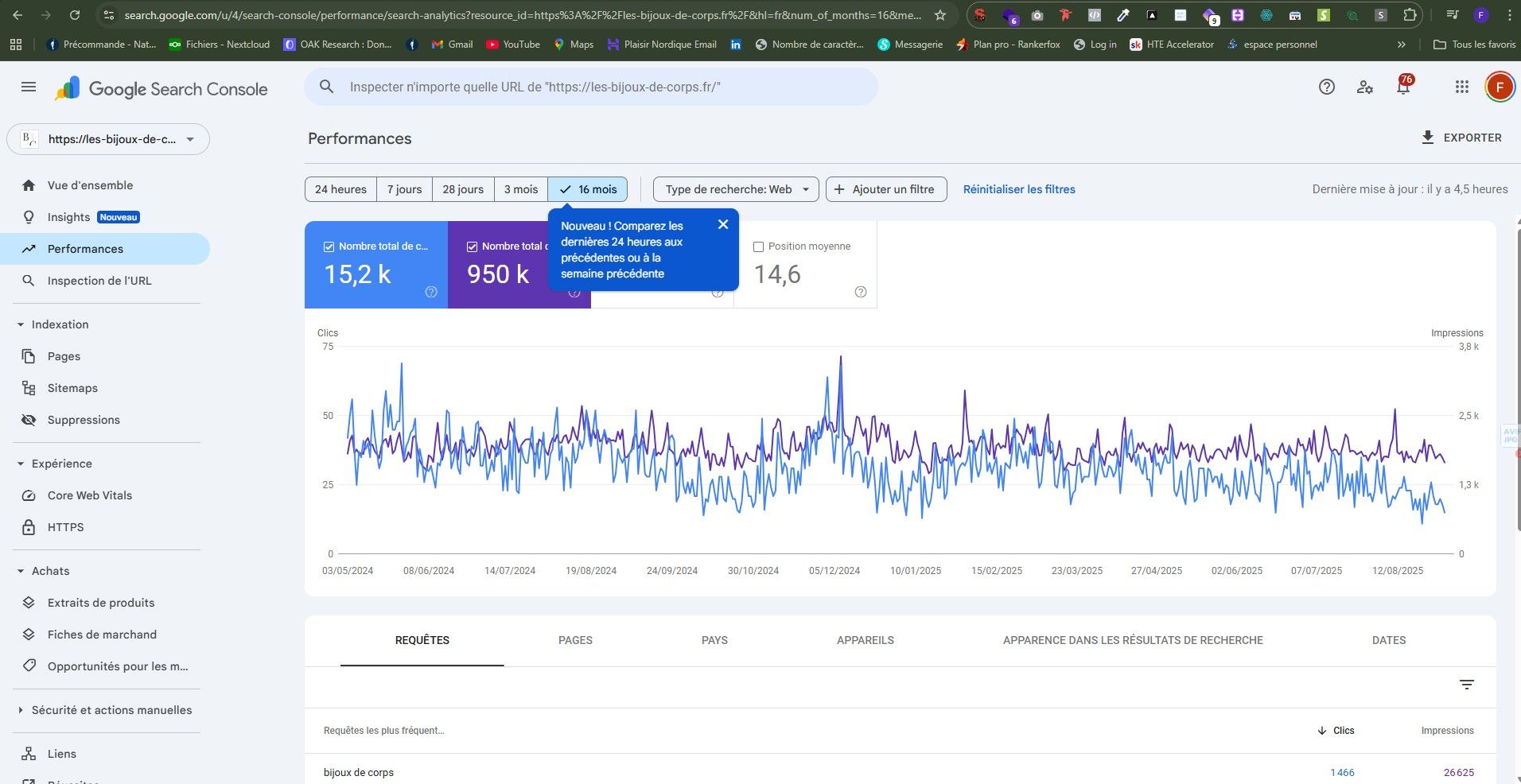 Baisse SEO sur les cliques sur les derniers mois, peu de backlinks ont été fait, des places faciles à récupérer