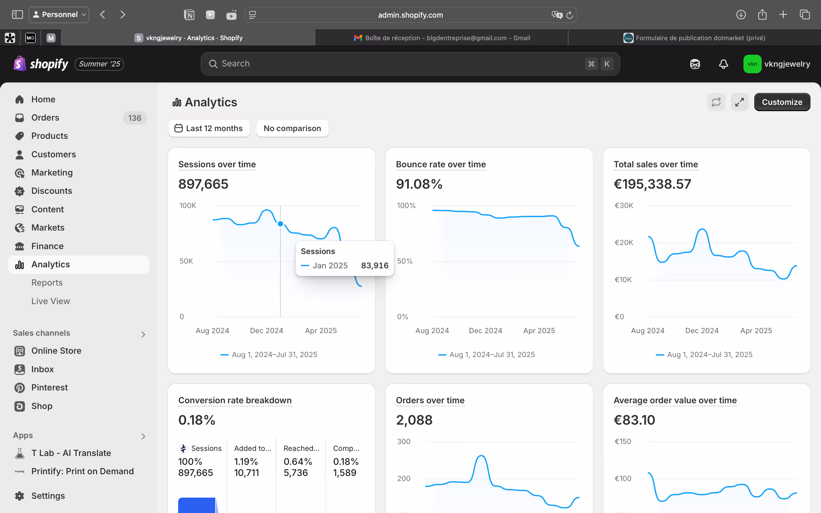 Le trafic a chuté de 3 000 à 800 visites/jour entre mai et juin 2025 suite à un nettoyage SEO volontaire (désaveu de backlinks toxiques via SEMrush). Résultat : taux de rebond passé de 90 % à 60 %, trafic plus qualifié et stable. Aucun impact sur les ventes. Base saine prête à être développée via contenu ciblé.