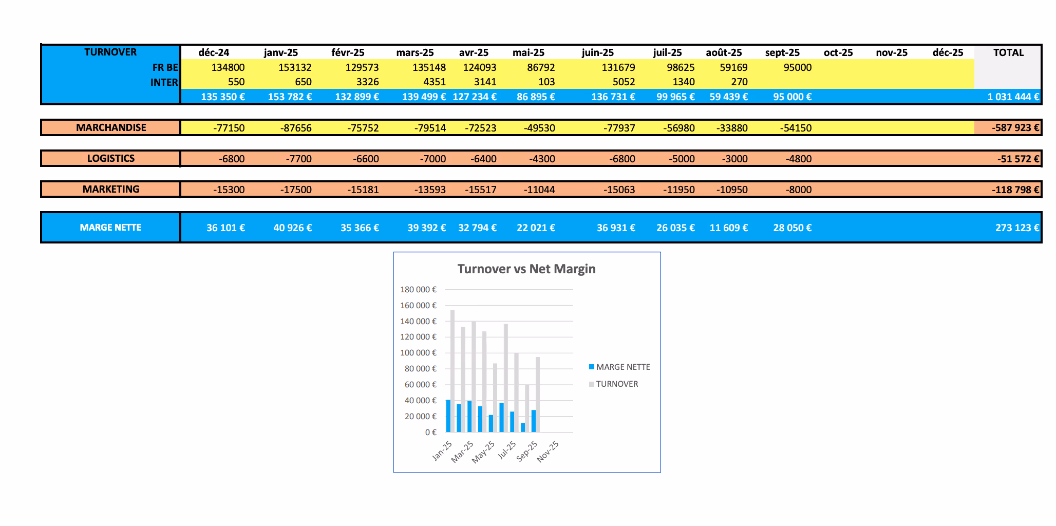Les marges sont stables (40 %), le référencement naturel solide (55 % du trafic), et la logistique est intégrée en interne dans un entrepôt de 250 m² détenu par la société.