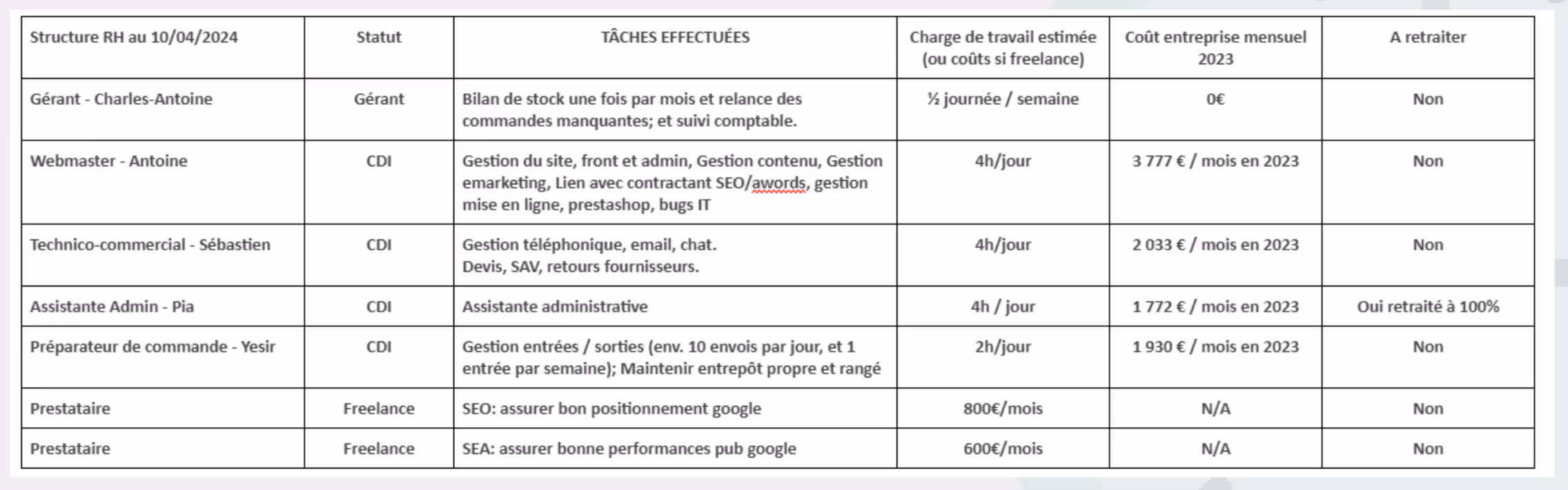 L’entreprise compte 3 salariés qui constituent une équipe autonome: un préparateur de commande; un technico-commercial et un webmaster.