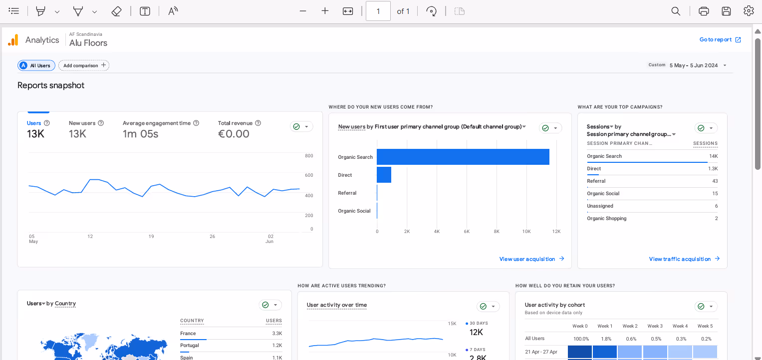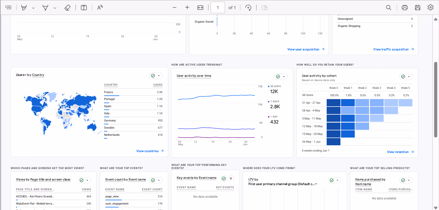 📉 À ce jour, aucune dépense significative en publicité n’est engagée. Le trafic repose essentiellement sur du référencement organique (80 % du trafic total), avec quelques relances manuelles par email. Cela laisse une marge de manœuvre importante pour tester des canaux payants tout en maîtrisant le coût d’acquisition client (CAC).