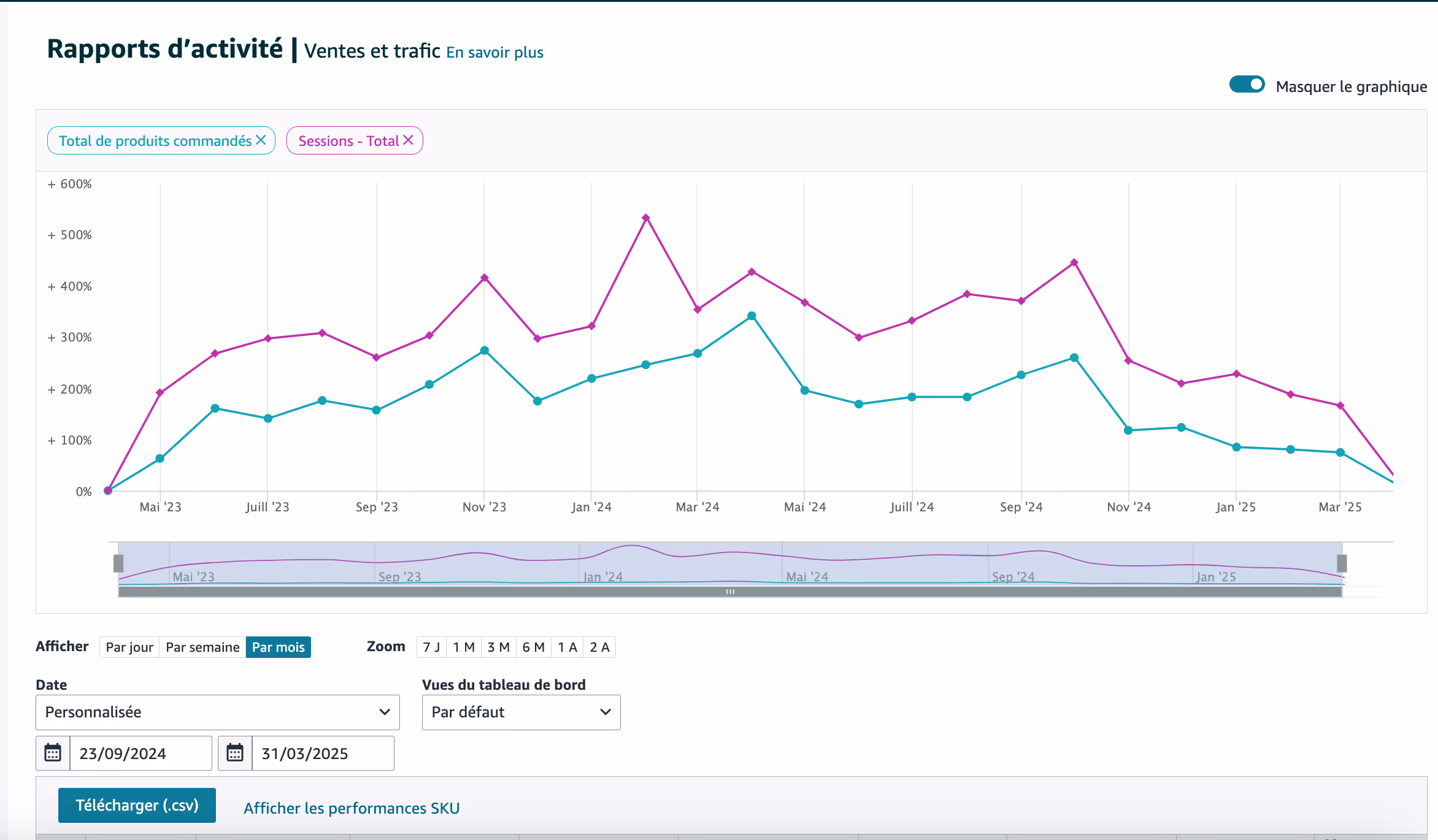 Le trafic est exclusivement le trafic d'Amazon. J'ai donc fait des captures d'écran depuis Amazon Seller, ainsi que des captures d'écran du trafic sur le store.